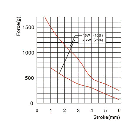 保持式電磁鐵行程和力量的曲線圖: