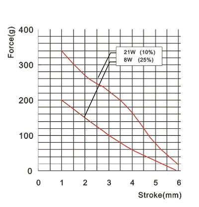 行程和力量曲線圖: