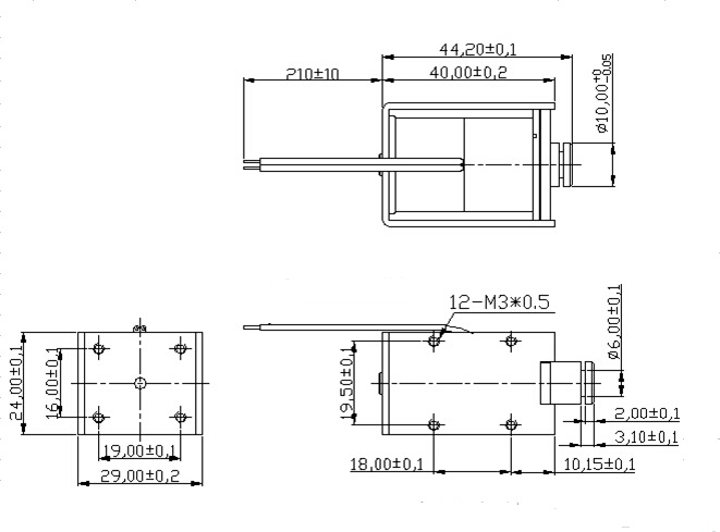 一,U1040推拉式電磁鐵尺寸圖: