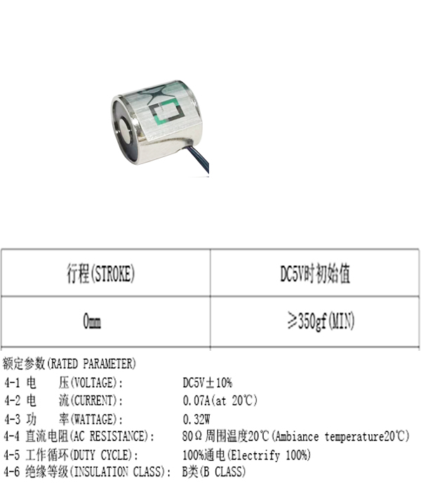 微型吸盤(pán)電磁鐵的吸力:350g正負(fù)10%