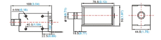 電磁鐵的側(cè)面各有4個(gè)M4的螺紋孔